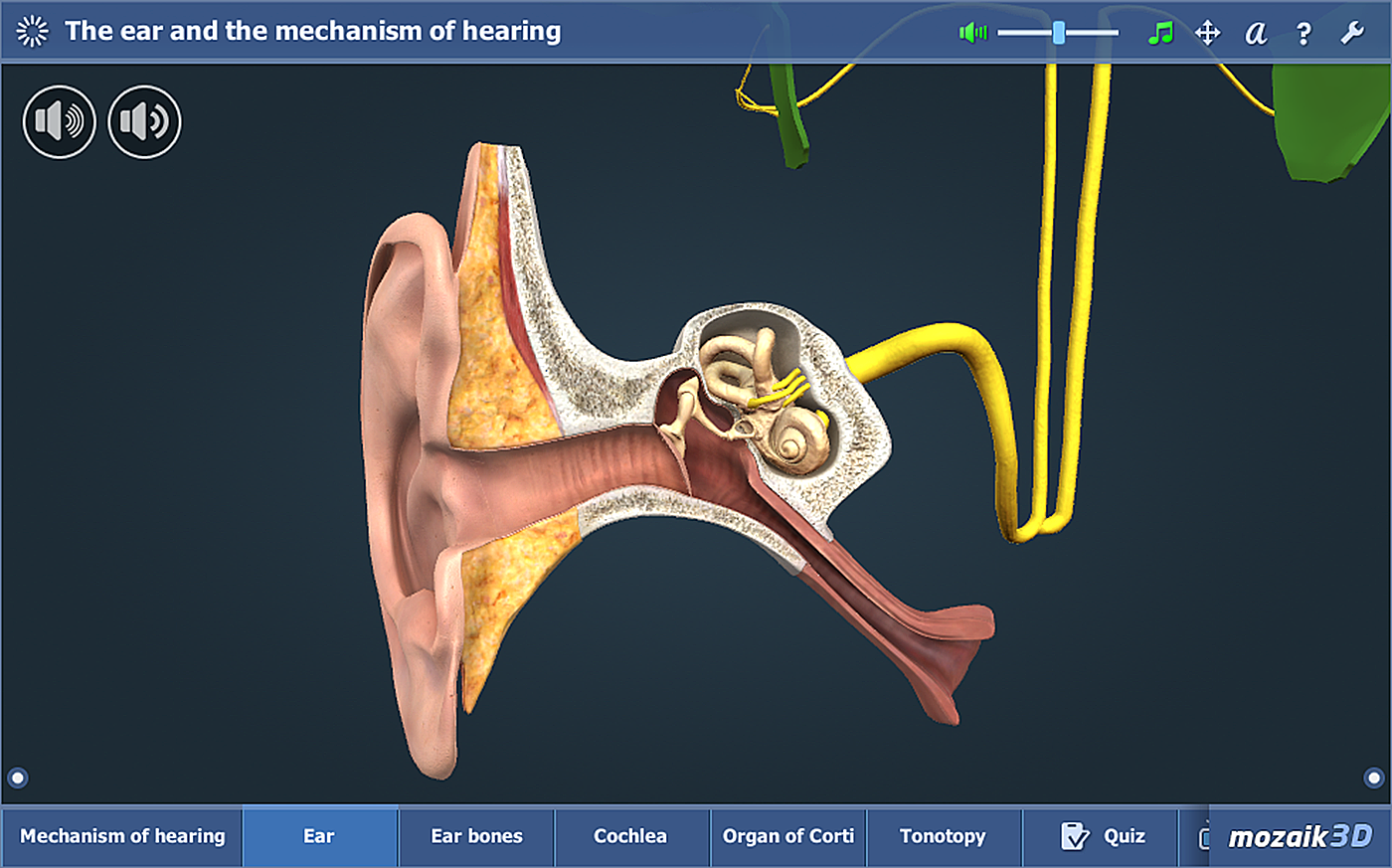For Biology geeks, we have the fresh, freakishly realistic human hearing 3D. Make sure you click on the sound icon at the upper left corner of the 3D window to see how our ear processes sounds of different frequencies.