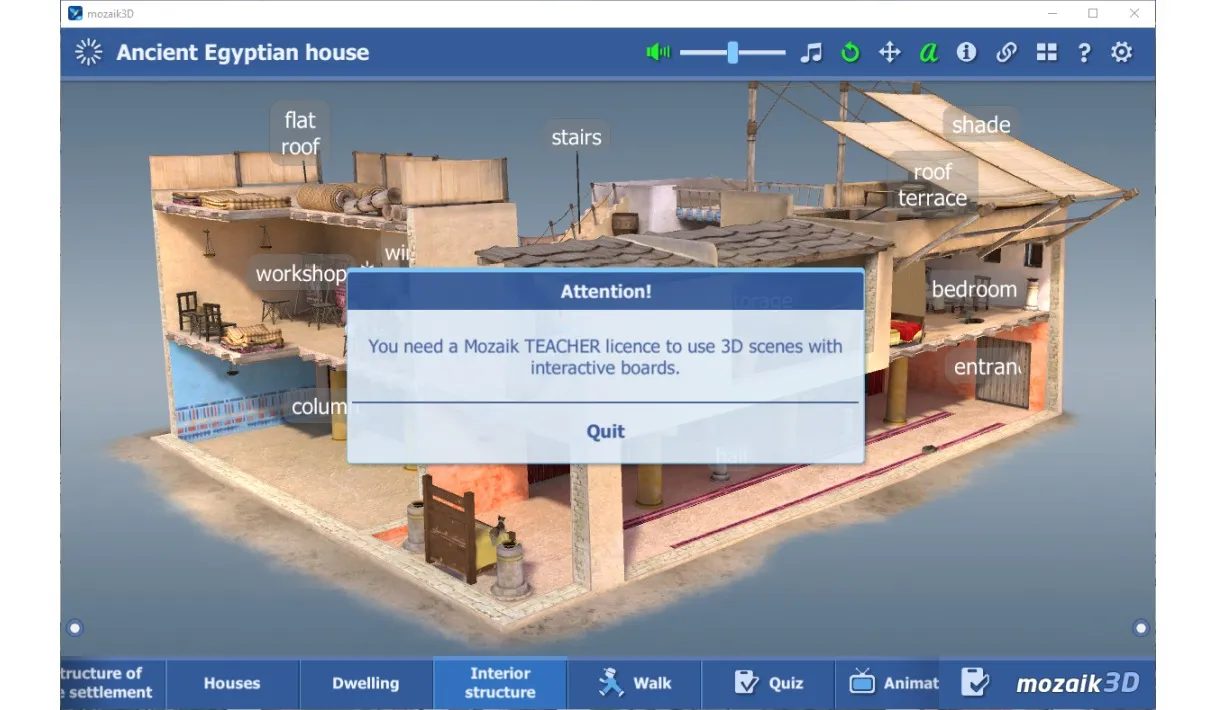 Unsere 3D-Modelle dürfen nur mit einer Lehrerlizenz (Mozaik TEACHER, oder mozaBook CLASSROOM) für Unterrichtszwecke verwendet werden. Ein Unterrichtszweck wird vermutet, wenn ein Projektor an den Computer angeschlossen ist oder die Bildschirmgröße mehr als 32 Zoll beträgt (z. B. interaktive Tafel).