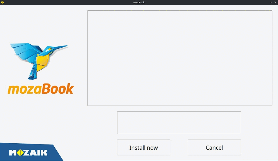 Conseil Téléchargez et copiez le programme d'installation mozaBook dans le même dossier que celui où l'assistant de configuration Linux a été téléchargé. L'assistant de configuration Linux lancera le programme d'installation mozaBook immédiatement après la préparation de l'environnement.