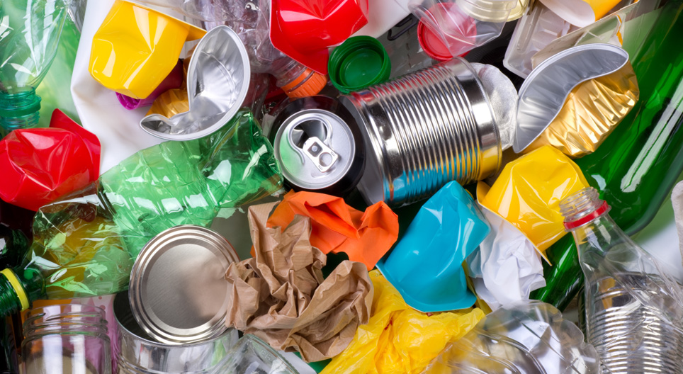 Der Abfall in der Mülltonne, wie zum Beispiel eine Papiertüte geht durch einen langen Prozess, bevor sie wiederverwendet wird.