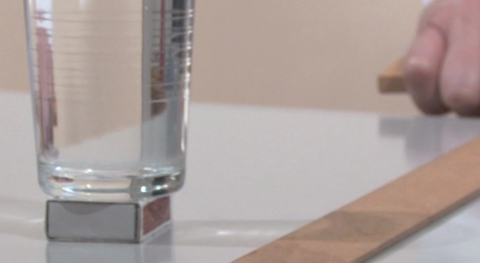 How can you knock a matchbox out from under a glass of water without spilling it?