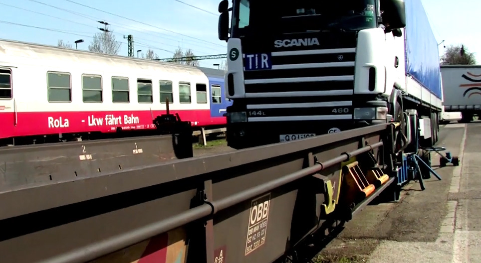 Die Rollende Landstraße (kurz RoLa) ist eine umweltfreundliche Transportmethode, bei der komplette Lastwagen mit der Bahn befördert werden.