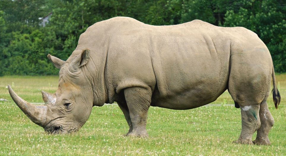 La caractéristique principale du rhinocéros est la corne située sur le devant de son crâne, dont il se sert à la fois pour attaquer et pour se protéger.