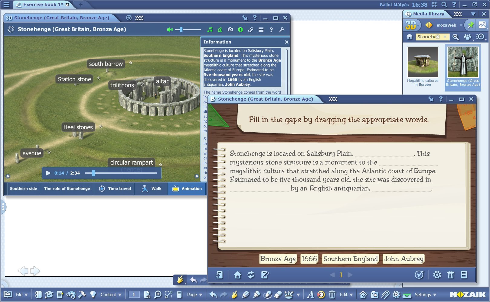 We also have the option of choosing among the exciting and very detailed 3D scenes and showcasing them in the class. Discover the mysteries of Great Britain’s most well-known symbol, the Stonehenge! It's easy to raise the students’ interest with the help of these 3D scenes, resembling their favourite video games, and make them think about the topic. Then you can simply select some parts of the written text and go for the built-in gap-filling exercise, or create a new customized test with the Test editor tool.