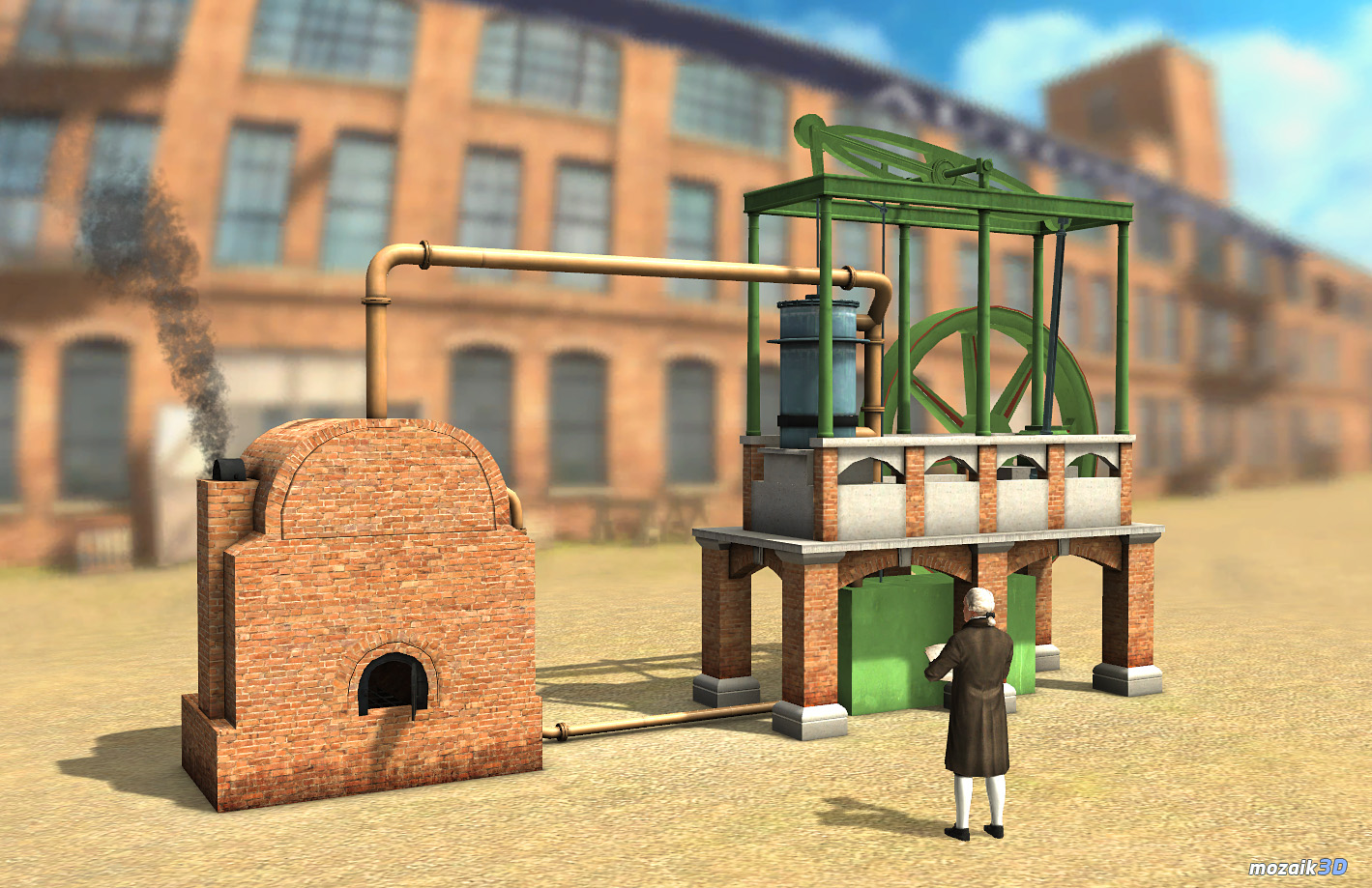 Applying Watt’s Steam Engine (18th century) mozaik3D Interactive model we can get familiar with the engine’s structure, with the operation of some of its parts and with circumstances of development. Let’s look at the narrated Animation first. Then, clicking on Edit we can drag the engine with our mouse and look at it in various views. In the toolbar above, if we click on rotate the image can be locked in any view. In this way, further drawings and texts can be added to make the material clearer for students.